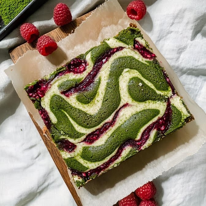 A matcha lover's dream! This soft, chewy blondie is infused with premium matcha for a perfect balance of earthy sweetness. Finished with creamy swirls and a touch of raspberry, it's the ultimate treat for matcha enthusiasts.